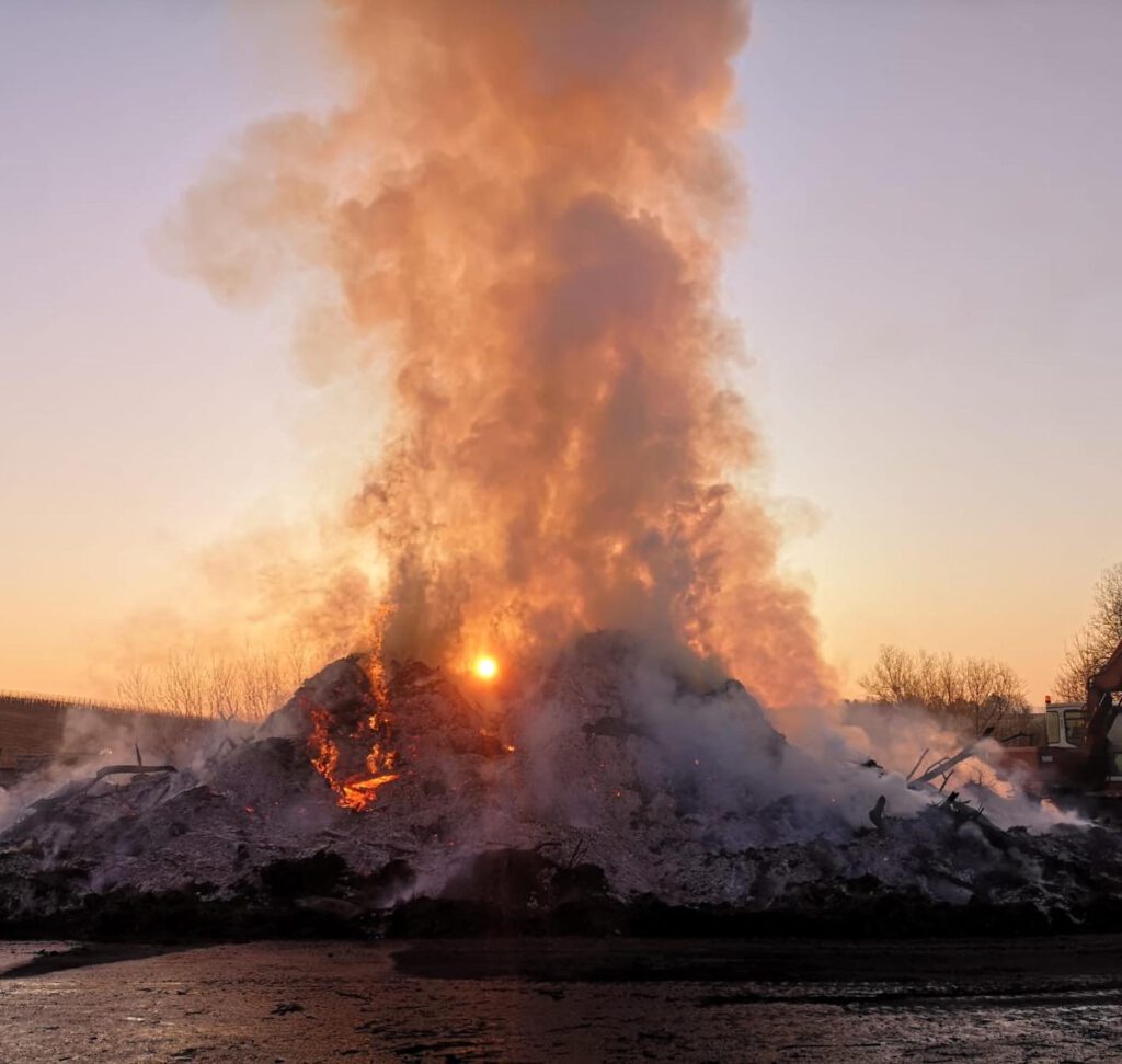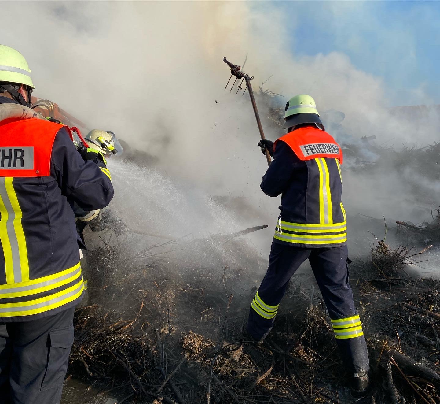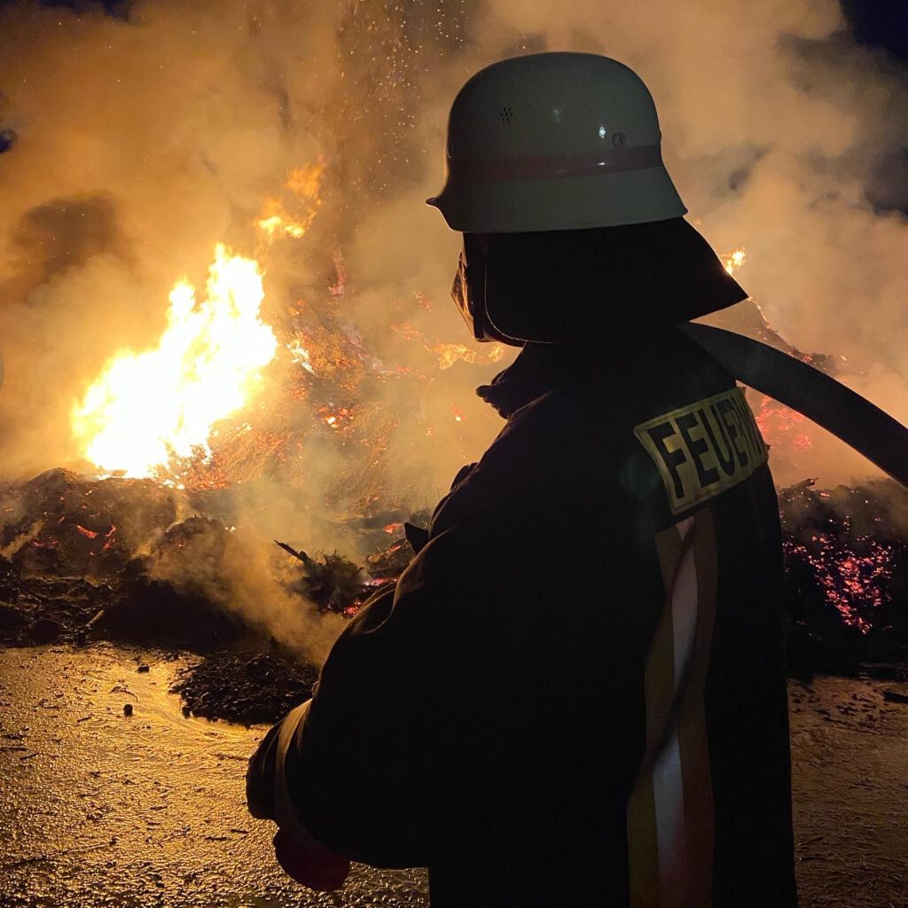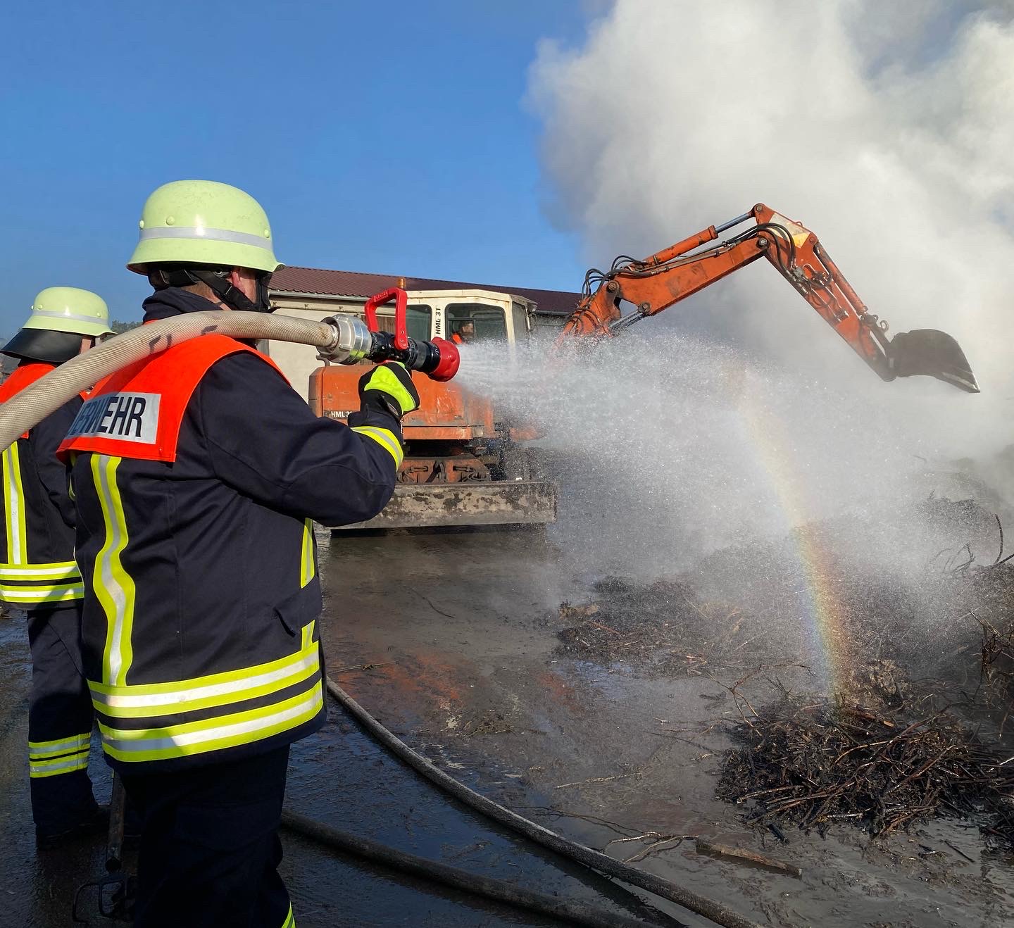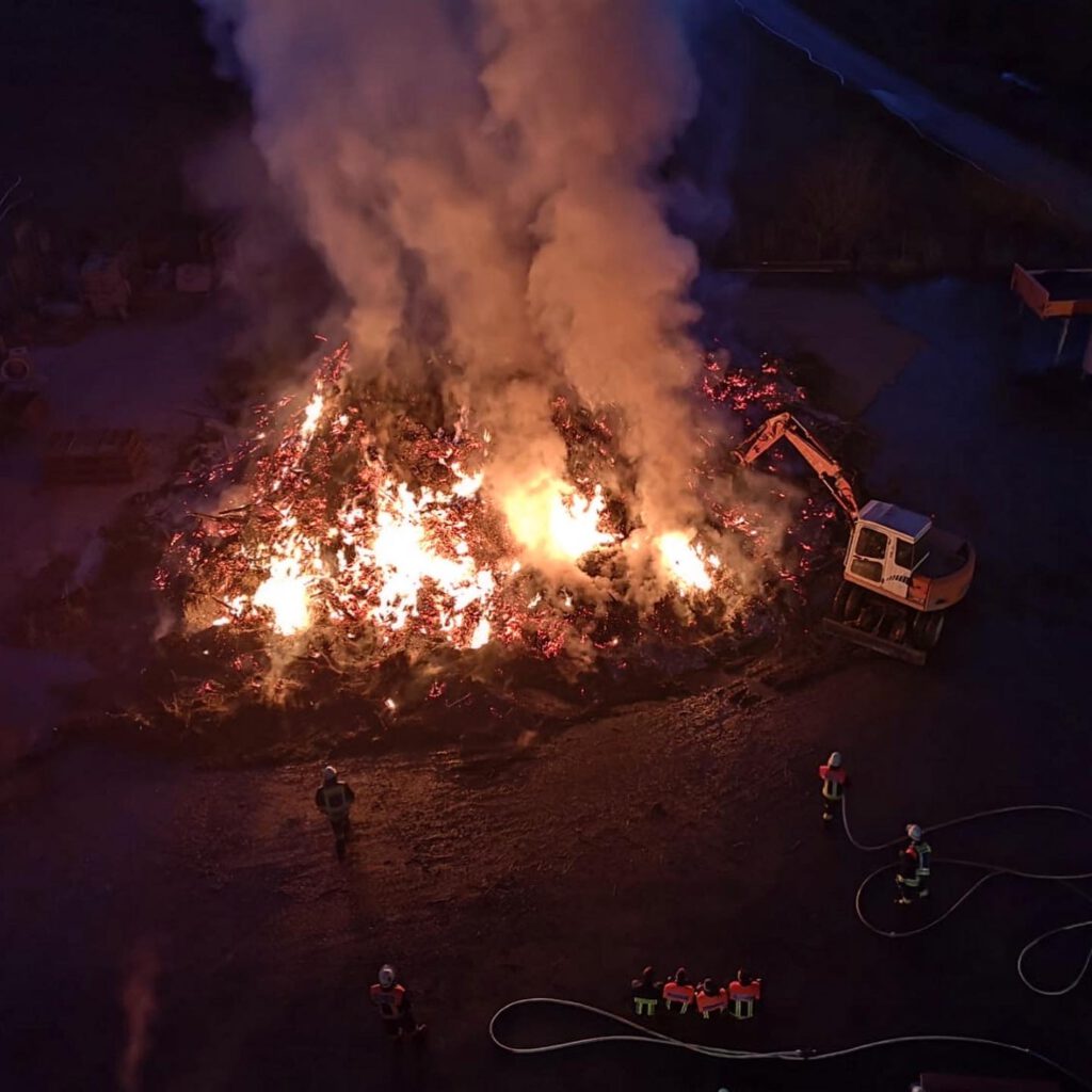 Nach knapp 12 Stunden Einsatzzeit, dem Einsatz von über 60 Feuerwehrschläuchen und mehreren Feuerwehrkreiselpumpen zur Wasserförderung von insgesamt über 130.000 Litern Löschwasser, welches schlussendlich zum Ablöschen des restlichen Häckselmaterials benötigt wurde, wodurch es zeitweise in den Siedlungsgebieten zu Druckverlusten kam, konnten wir die Löschmaßnahmen beenden. Am Sonntagnachmittag konnten die Feuerwehrkameraden:innen nach dem Reinigen der Fahrzeuge und der Wiederherstellung der Einsatzbereitschaft den Einsatz beenden.