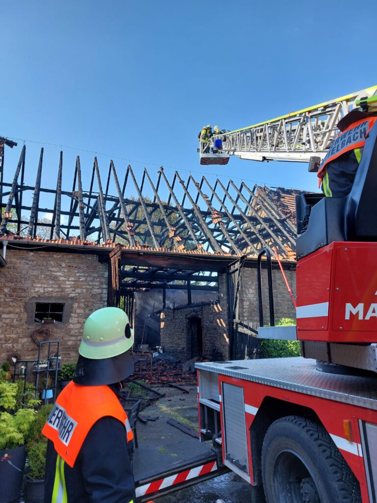 Beim Eintreffen an der Einsatzstelle stand zunächst die Sicherstellung einer stabilen Wasserversorgung im Vordergrund. Parallel dazu wurden weitere Atemschutzgeräteträger ausgerüstet, um die intensive Brandbekämpfung im Innen- und Außenangriff sicherzustellen. Durch das schnelle und koordinierte Eingreifen aller eingesetzten Kräfte konnte glücklicherweise ein Übergreifen der Flammen auf ein angrenzendes Wohnhaus verhindert werden.