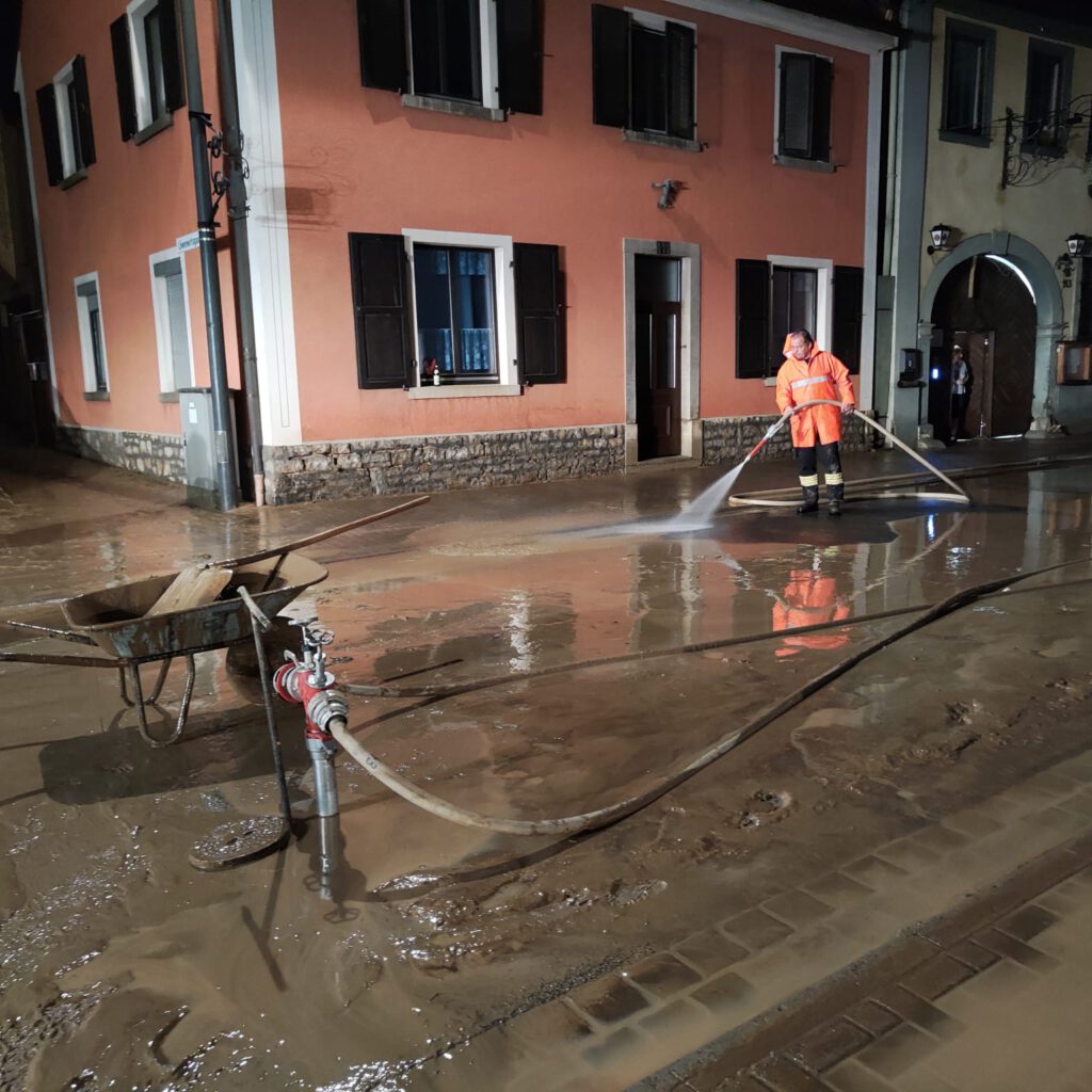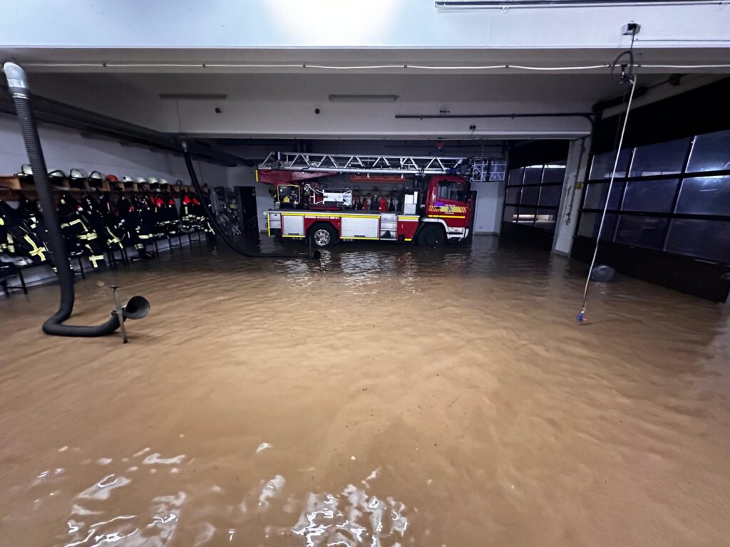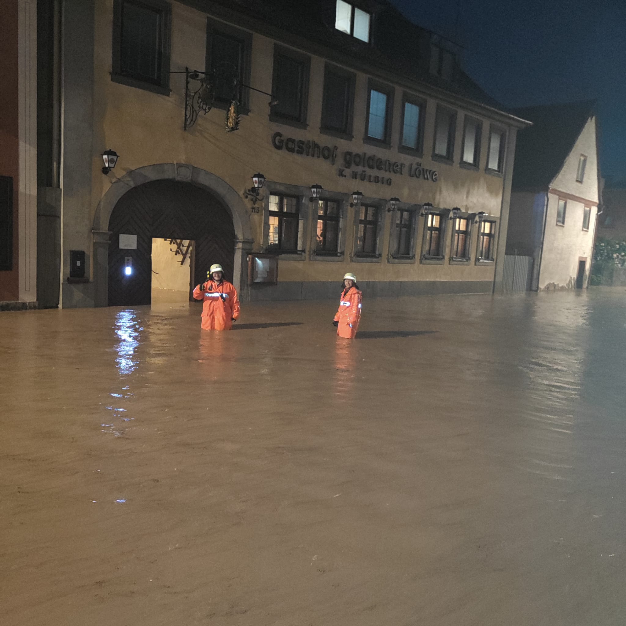 getreten ist und bereits großflächig die Hauptstraße ab Kreuzung Mühlweg in beide Richtungen flutet. Nach rund 20 Stunden Einsatz konnten über 40 Einsatzstellen abgearbeitet werden und, nachdem vollgelaufene Keller abgepumpt wurden, die betreffenden Straßenzüge von Schlammmassen gereinigt werden. Glücklicherweise erhielten wir um 3:44 Uhr Unterstützung durch die Feuerwehr Hörblach. Dazu an dieser Stelle nochmals vielen vielen Dank! Die letze Einsatzstelle des Tages konnten wir gegen 17:10 Uhr beenden. Damit war es aber leider noch nicht getan, den die Aufräumarbeiten beschäftigten uns noch die ganze Woche. Bedanken möchten wir uns bei unserer Bevölkerung, welche in Eigenleistung mit Familie, Freunden und Bekannten selbst Hand angelegt haben und uns somit eine Vielzahl weiterer Einsätze erspart haben. Auch der Firma Dorsch wollen wir für die Bereitstellung der Gerätschaften und der tatkräftigen Unterstützung danke sagen. Ein besonderer Dank gilt auch den Freiwilligen, die uns bei der Reinigung des eigenen Gerätehauses tatkräftig unterstützt haben! So konnte die eigene Mannschaft während dieser Zeit weitere Einsatzstellen abarbeiten.