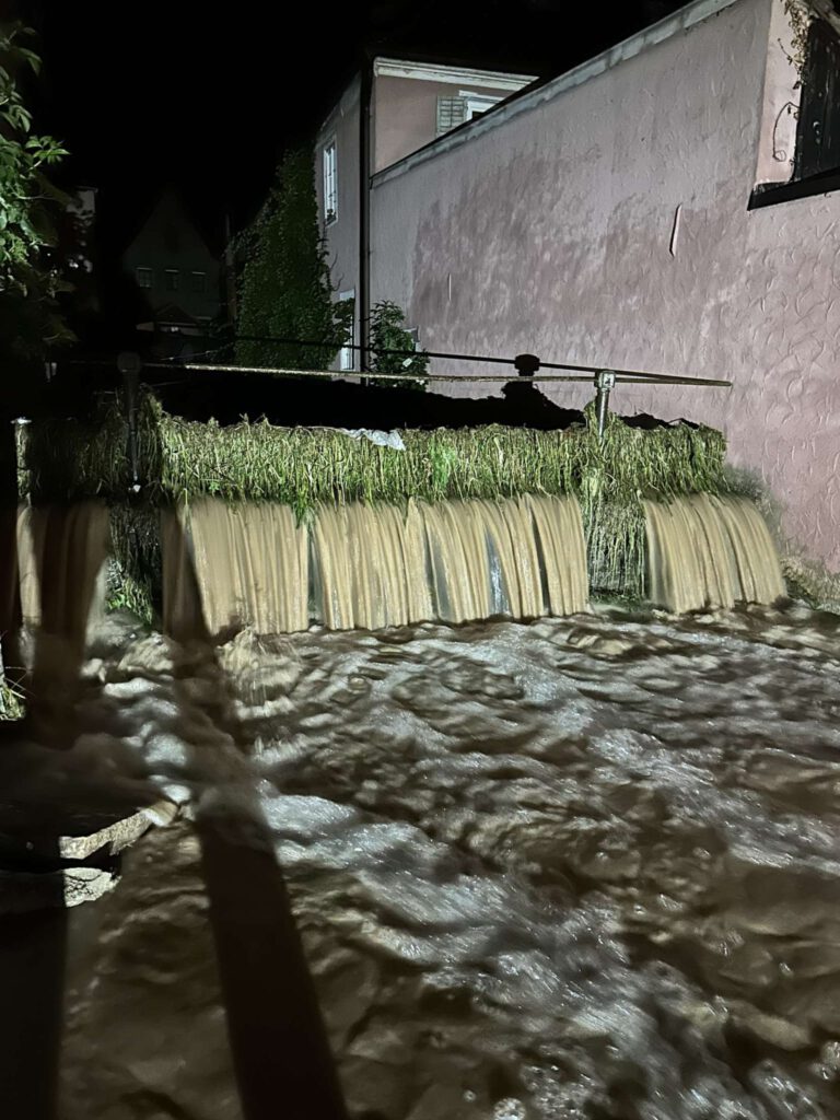 Dies sollte der erste Einsatz gegen die nun kommenden Wassermassen sein. Auf der weiteren Erkundung musste festgestellt werden, dass der sonst beschauliche Riedbach als reißender Strom über die Ufer
