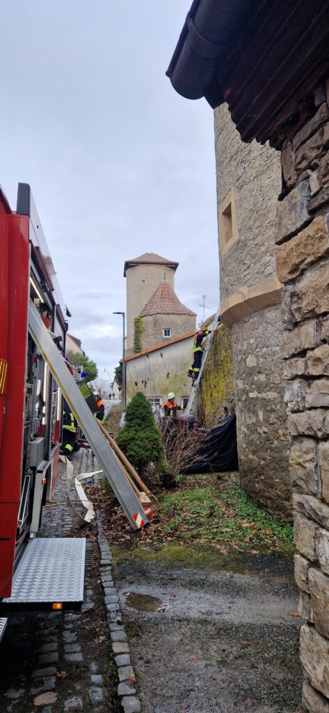 Am Samstagmittag wurde die Feuerwehr Mainstockheim gemeinsam mit der Feuerwehr Dettelbach zu einem Zimmerbrand mit Person in Gefahr in die Dettelbacher Altstadt alarmiert.